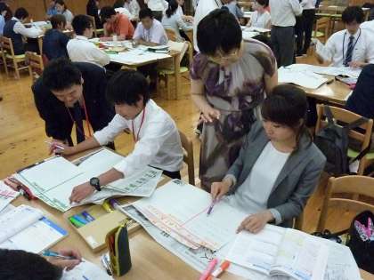 本年度、下京中学校・梅小路小学校・向島東中学校・向島小学校・向島藤の木小学校の5校が、文部科学省の「教科等の本質的な学びを踏まえたアクティブ・ラーニングの視点からの学習・指導方法の改善のための実践研究」指定校として授業研究に取り組んでいます。本日、「本質的な問い」について教育委員会主催の研修会を本校を会場として実施しました。京都大学西岡加名恵教授をお迎えし、児童・生徒の「主体的・対話的で深い学び」の実現に向けたパフォーマンス課題づくりを行いました。5校の研究指定校や教育委員会からも多数参加していただき盛大な研修会となりました。この、研修で各教員が今まで以上に授業力を身につけ、児童・生徒が「わかった」「できた」と実感できる授業を目指していきたいと思っています。