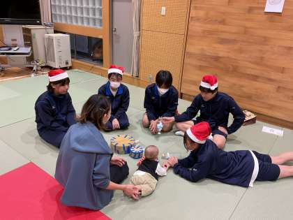 12月11日より、3年生家庭科の授業「乳幼児とのふれ合い」保育実習がスタートしました。池坊保育園・光林保育園・修徳児童館の皆様にご協力いただき、各クラスごとに実習を進めていきます。
