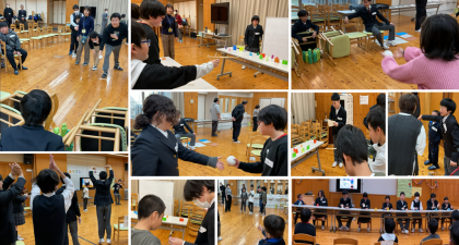 普段の学校生活を動画にした学校紹介や「射的」「ボウリング」「紙飛行機レース」の3つの班に分かれて準備をしたゲームコーナー、音楽の時間に取り組んだ「カップス」と「トーンチャイム」。