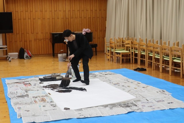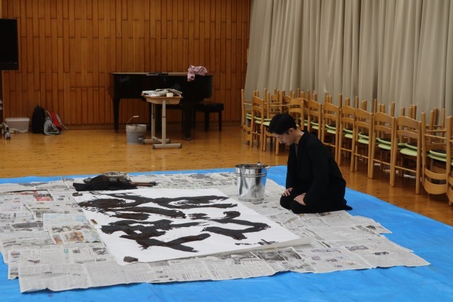 1月30日(金)、書道家の福田匠吾先生をお招きし、書道教室を実施しました。福田先生にご指導いただくのは今回で2回目、約1年ぶりの授業です。