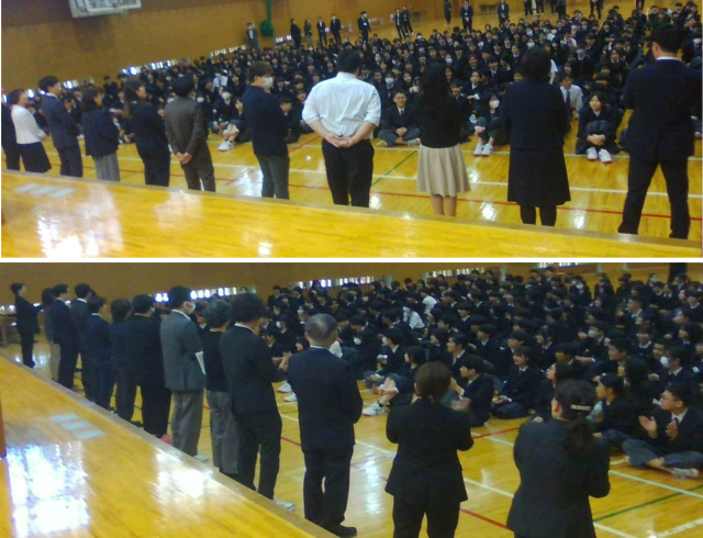 下京中学校に新しく赴任された教職員の方々をみなさんの温かい拍手と代表生徒の言葉でお迎えし、