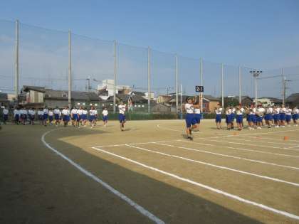 晴天の中 選手のみんなが吹奏楽部の演奏のもと 堂々と入場行進を