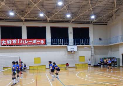 対戦校は 嵯峨中学校です。第1セット序盤から サーブが決まり連続