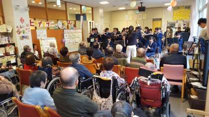 吹奏楽部が、地域の老人福祉施設の音楽祭に招待していただきました。懐かしい昭和のヒット曲を熱演して、皆さんに喜んでいただきました。地域で活躍するステキな七中生を、これからも皆で支え・応援していきたいと思います。