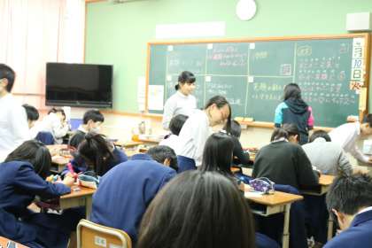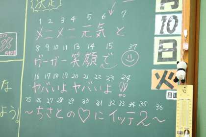 このクラスは学級目標を決め、それを一文字ずつみんなが分担してペンで書き、一枚の掲示物にしていました。