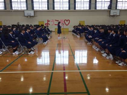 新入生の歓迎の言葉の後、クラスで使うペンセットのプレゼント贈呈が行われました。