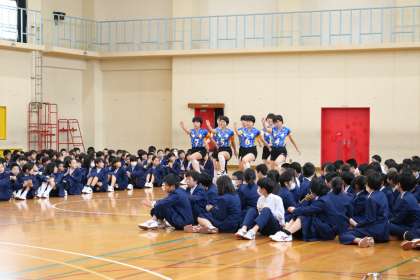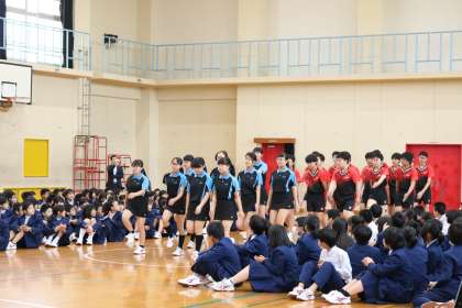 女子バレー部・女子バスケットボール部・卓球部が元気に入場します