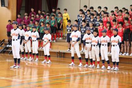 写真は女子バレー部、野球部、ラグビー部の様子です。