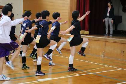その場で足踏みだったのですが、女子バレー部は、写真の通り演技をしているかのごとく美しい行進姿でした。
