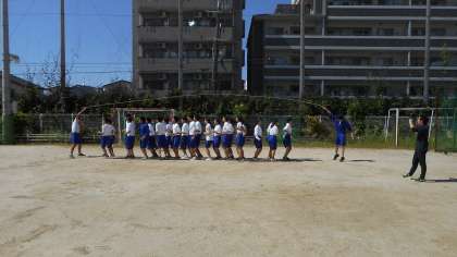 その後、修学旅行に向けて、クラスの団結を図るために、大縄跳びを行い、楽しいひとときを過ごしました。