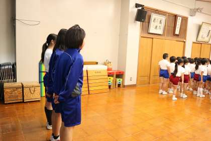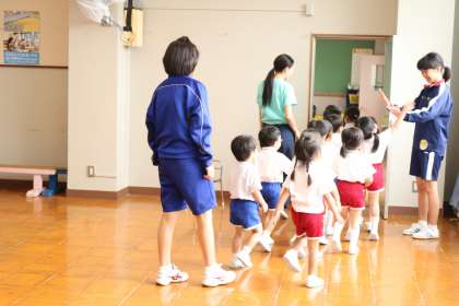 伺ったときには、年少・年中・年長の3学年が講堂に集まり