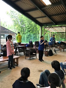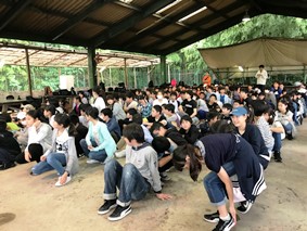あいにくの雨模様ですが、無事友愛の丘に着きました。入村式の様子です!