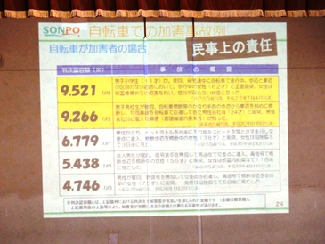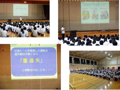 本日4時間目に自転車教室を行いました。近年起きている自転車の事故の数が増加している中、場合によっては自動車とぶつかっても自転車の方が過失が高くなるケースもあることを知りました。また、自転車と歩行者の事故で多額の賠償を支払うケースもありました。身近な乗り物の扱い方を間違わないように、正しい自転車の乗り方を常に意識しましょう。