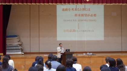 日曜参観の午後から、3年生の学年保護者会、進路保護者会が行われました。学年保護者会では、修学旅行の様子をビデオで見ていただきました。進路保護者会では、進路指導主事の池戸先生に、入試制度を中心にお話していただきました。ご参加いただきました保護者の皆様、ありがとうございました。