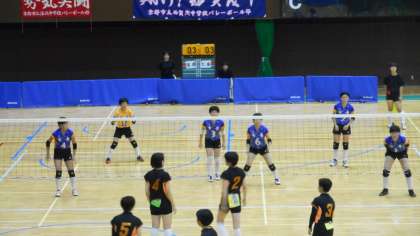 第1セットを先取されましたが、第2セット粘って取り返し、フルセットまで縺れる展開となりましたが、最終セット残念ながら取り返されて1−2で敗れました。最後まで諦めず、全力プレーを見せてくれたバレー部のみなさん、感動をありがとうございました。