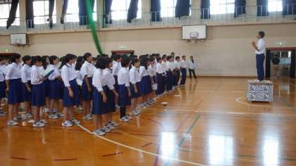 まずは入場の仕方の確認です。 まだ取組を始めたばかりのリハーサルでしたが、各クラス