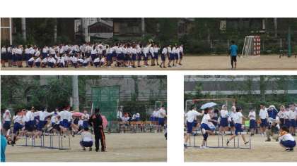 午後の部は予定を変更してハードル走を行っています。全力で飛んで走っています!