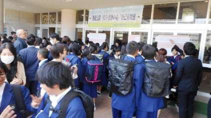 クラス発表の様子。西大路小学校の卒業生にとっては、初めてのクラス分けです。