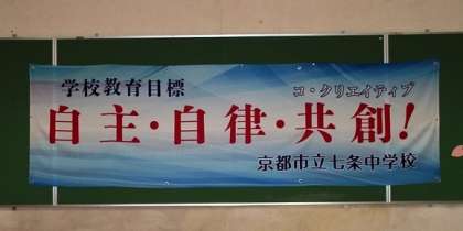 新入生の皆さんが、これまで小学校のリーダーとして培ってきた力を存分に発揮しながら、先輩方と力を合わせ、新たな七条中学校を創っていってくれることを楽しみにしています。