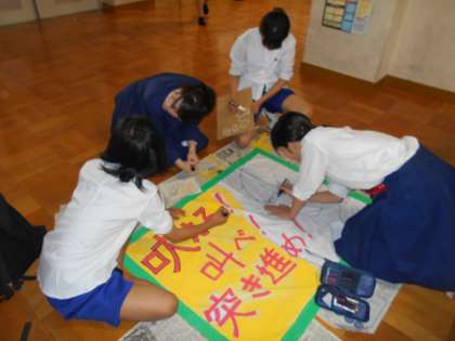各クラスの係が 学級の団結の証 『学級旗』を作成中です。