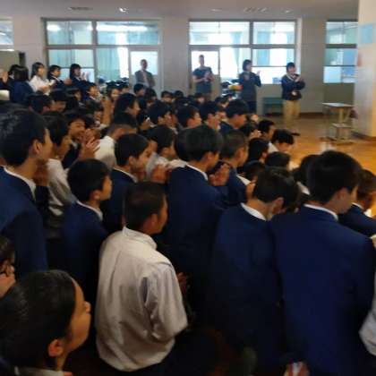 歌あり、群読ありの会、最後はアメリカの学校に通うことになった友人が「僕は辛いことがあってもみんなの顔を思い出して頑張るので、みんなも頑張って下さい!」とあいさつすると、一層大きな拍手がわき起こり、涙、涙の励ます会になりました。