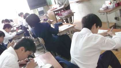 中学校で初めてのテストが5月20日から2日間始まります。1年生は,5限にテスト範囲表が配布され学習計画を考えました。平日の数分空いた時間を利用していかに勉強を進めるかを計画したり、土日は朝何時に起きてどのくらい勉強すると計画表に書いた目標点に届くのかを考えていました。周囲の友達と確認や相談をし合いながら、一生懸命に学習計画表を書き進めていました。