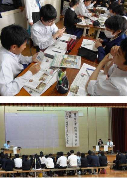 中学校の国語科と社会科の授業を公開し、小中の教員が膝を交えて研究討議を行いました。また、講師の國學院大學教授・田村学氏より、ご指導・ご助言ををいただき、たいへん充実した研修会になりました。。