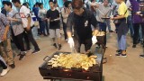 筒城浜公園でバーベキュー(夕食)です!メニューは肉野菜炒め,焼きそば,手羽先,イカ,エビ,ホタテ,ウィンナー,お味噌汁は麦味噌です!地元の方が調理していただいたのを美味しくいただいています!