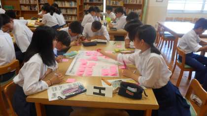 綜合学習で、平和ディスカッションを行いました。テーマは「平和な社会を築くために、私たちにできることはなんだろうか?」でした。