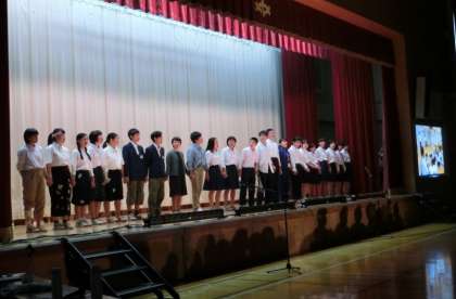さすが3年生!長崎・福岡への修学旅行で学んだ「平和学習」を土台にして劇を創りあげました。「平和な時代共にを築いていこう」という強いメッセージを後輩たちに伝えました。