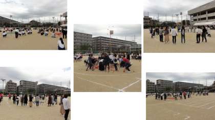 PTA種目,学区対抗玉入れです。午前中優勝した緑団と一緒にPTAの皆さんも楽しんで参加しています!
