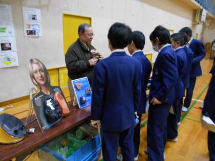一年生は、今日は防煙教室でたばこの有害さについて学びました。講義とブースに分かれての体験授業に参加したあと、自分たちで「たばこを勧められた時の断り方」や「川柳」を考えて発表しました。講義では、たばこを吸った時の肺の状態の動画を見たり、体験型のブースでは、たばこを吸っている人の人体モデルに触ったりとリアルな体験をしました。