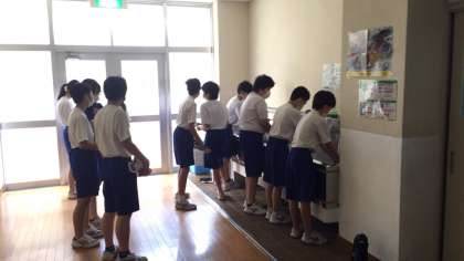学校が再開して、今週から生徒は毎日(午前または午後)登校しています。学校での新しい生活様式も定着し、手を洗う姿も休憩時間ごとにみられます。移動教室では入室前や授業の終わりに手を洗うようにしています。