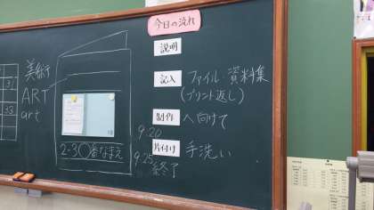 黒板に貼られた「今日の流れ」にも、最後には片付けと共に「手洗い」が明示されています。