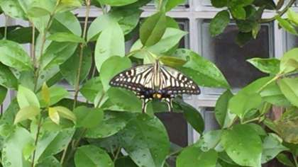 正門付近の「あじさい」がきれいに咲いています。そのすぐ横で「アゲハチョウ」の姿もありました。