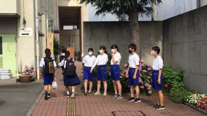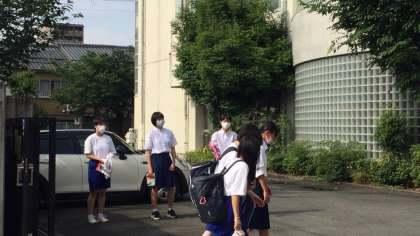 今日から平常授業となりました。朝は校門で、部活動生徒たちが「あいさつ運動」も実施してくれました。
