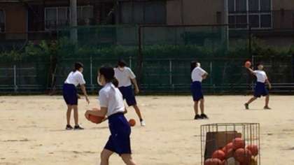 今朝は涼しかったのに、時間がたつにつれ気温がグングンと上がってきました。グランドでは生徒がハンドボール投げや50メートル走をしていました。グランドの西側の「畑」では、技術の授業の一環としてサツマイモの苗を植えていました。