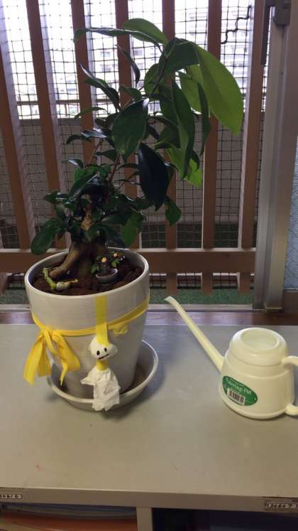 教室内の観葉植物の鉢には、「てるてるぼうず」が飾られていました。
