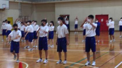 2年生の体育の授業は「ダンス」です。テレビのコマーシャルでもおなじみの曲に合わせて、みんなリズミカルです。