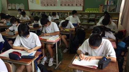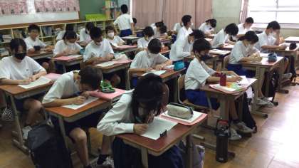 国語の授業では作文に取り組みました。今日は「社会を明るくする運動」の作文に取り組んでいますが、他にもたくさんの作文や詩、短歌、俳句などのコンクールもあります。夏休みにも是非チャレンジしてみてください。