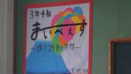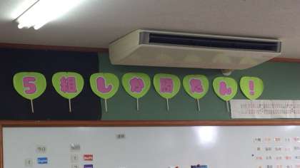 教室には学級旗が飾られていたり、目標が掲示されていたりもします。