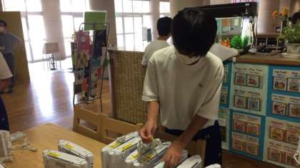 ポスター制作をする一方で、ピロティーでは合唱コンクールの練習に使う「デッキ」の確認作業も行いました。