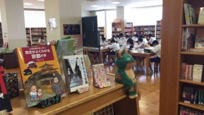 七条中学校の図書室は、とても広くて素敵なスペースです。