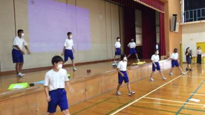 2年生は3時間目に「学年集会」を行いました。集会の中ではみんなでダンスを踊りました。このダンスは体育の授業で取り組んだものです。体育の授業ではクラスごとの発表でしたので、学年集会の場で全員でダンスをしようということになりました。