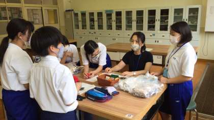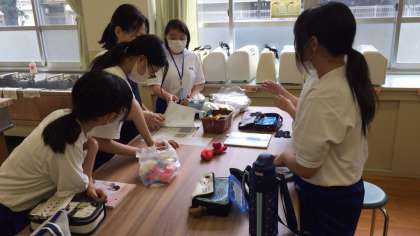 ハンドメイク部はたくさんの新入部員を迎え、みんなで仲良く活動しています。この画像は夏休み前のものです。