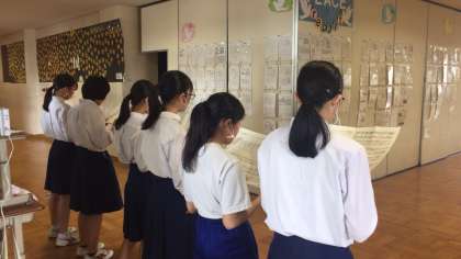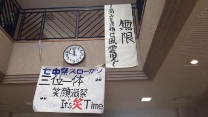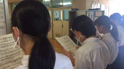 今日から合唱練習がはじまりました。ピロティーにはスローガンも掲示されています。今年は学級での練習の回数は週に一回程度とし、練習中も透明マスクの着用や壁やグランドに向かってのパート練習中心に行うようにと、校長先生からも放送がありました。