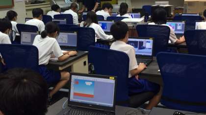 3年生の技術はコンピュータ室で「電子紙芝居」をつくっています。