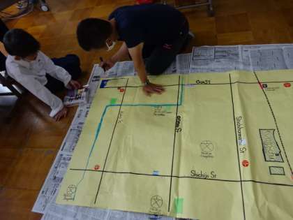 1組の英語の授業で作っている「エリアマップ」が徐々にできあがってきました。