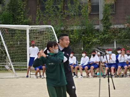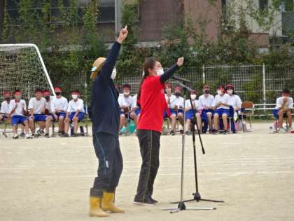 吹奏楽部の演奏にあわせて、先生方の歌やダンスも披露されました。
