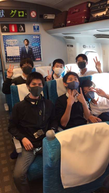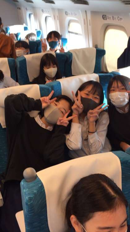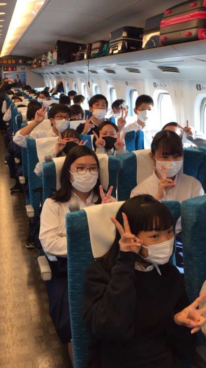 新幹線内はみんな前を向いて、比較的静かに過ごしてくれています。早くも、ご飯が食べたいという声が聞こえています。